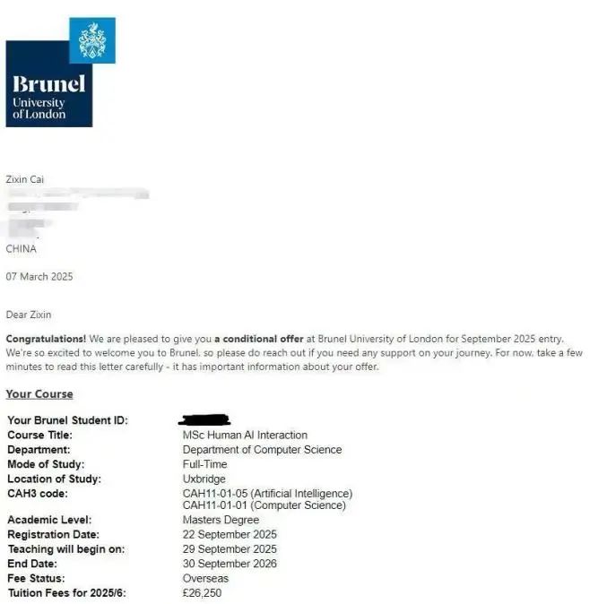6. 布鲁内尔大学,MSc Human AI Interaction专业