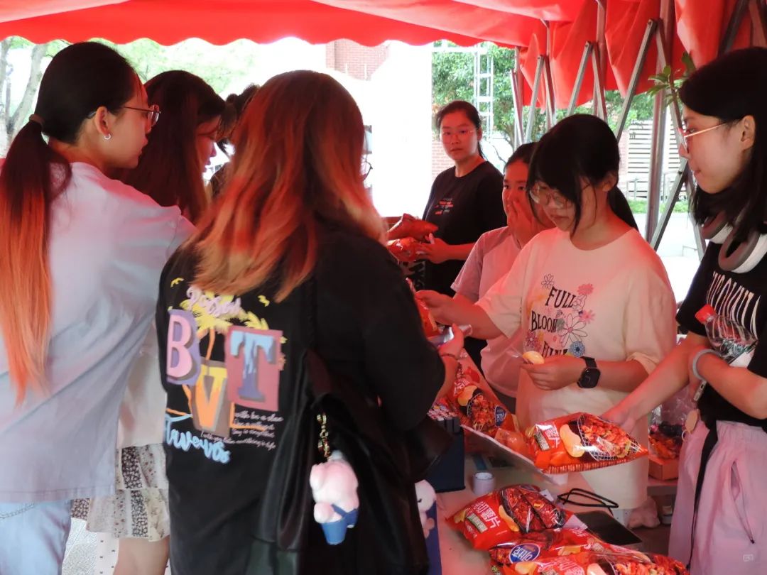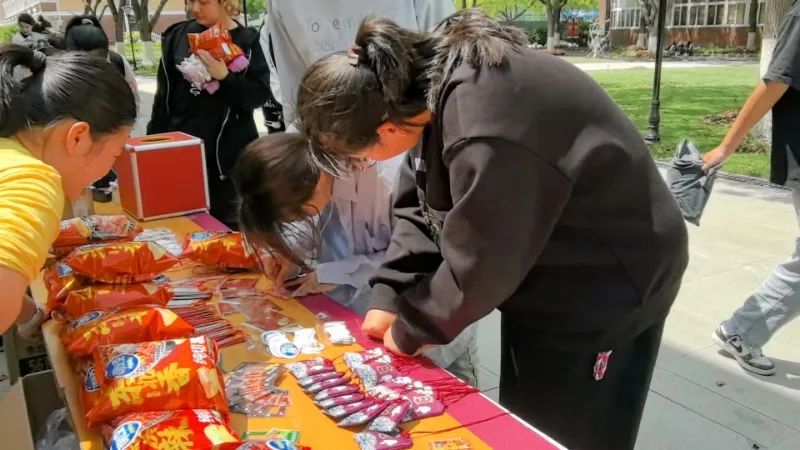 ·趣味游戏区:“薯片摆字”挑战激发了同学们的创意极限,“幸运刮刮乐”送出了限定礼品,“方言挑战”则引发了南北文化的趣味碰撞,单日参与人数突破 800人。