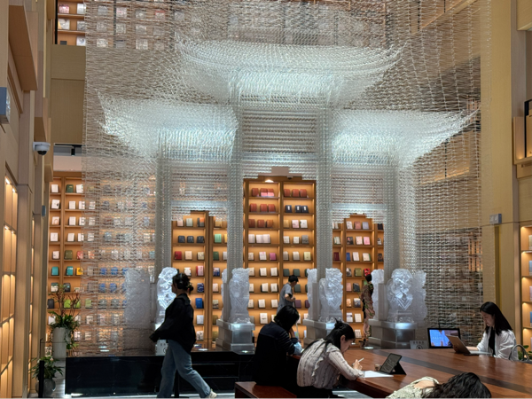 最令我震撼的是《城市记忆拼贴》装置作品,它将上海的历史片段以多维度视觉叙事的方式重现,老照片、文字与立体结构的碰撞,不仅诉说着城市的变迁,更让我领悟到视觉设计在传承文化记忆中的力量。而在文创与视觉周边衍生品区域,展览的延伸价值被进一步放大——以展览主题色为灵感的丝巾、融合中西美学符号的笔记本、用传统纹样与现代插画结合的明信片等,这些产品不仅是艺术品的延续,更是让文化融入日常生活的载体。它们让我意识到,视觉传达设计不应止于展览的瞬间,而需通过衍生品的设计,让文化之美真正“落地生根”。这场展览不仅拓宽了我的专业视野,更让我重新思考设计的社会价值——以视觉为媒介,连接过去与未来,让文化在创新中生生不息。