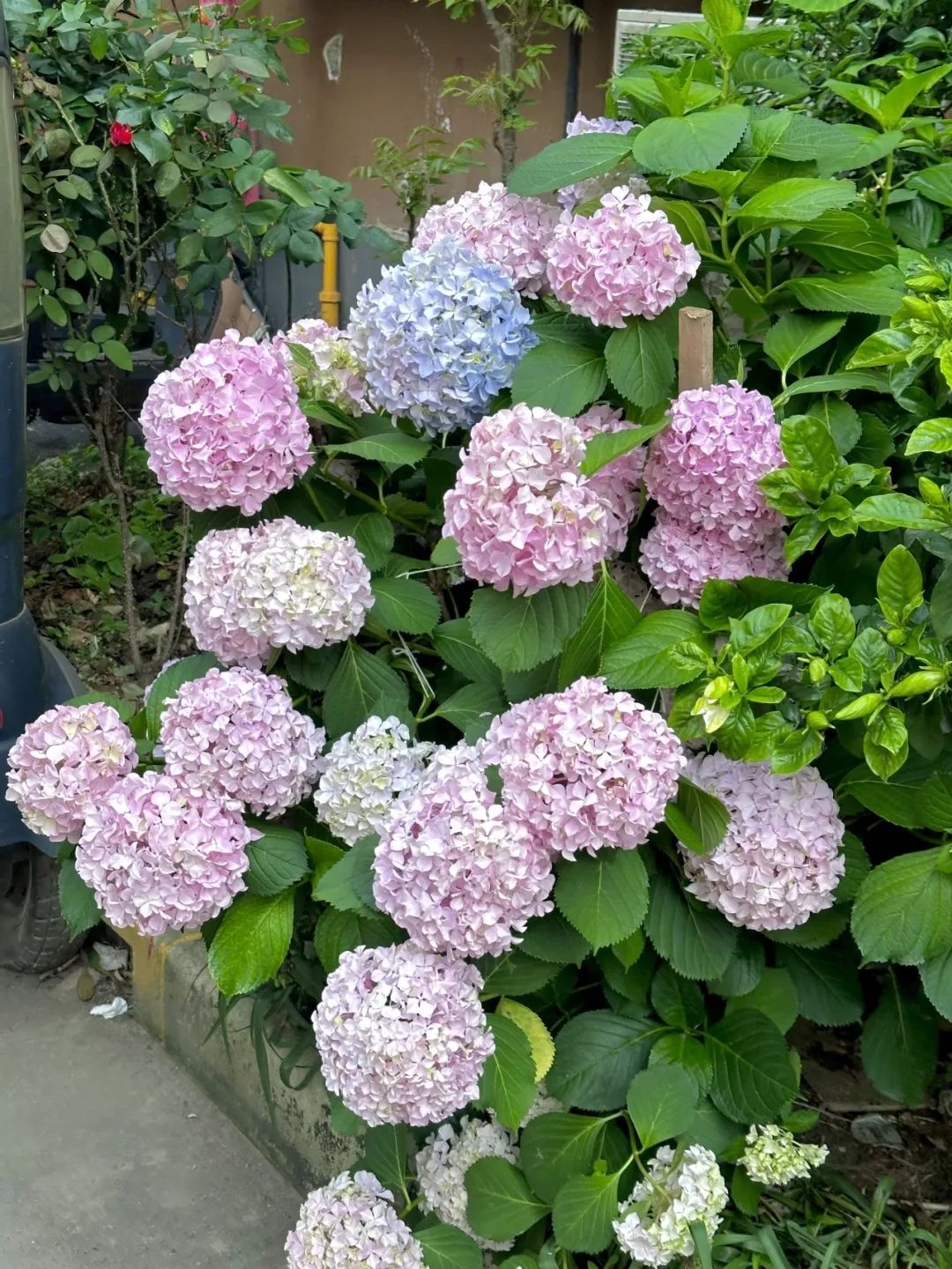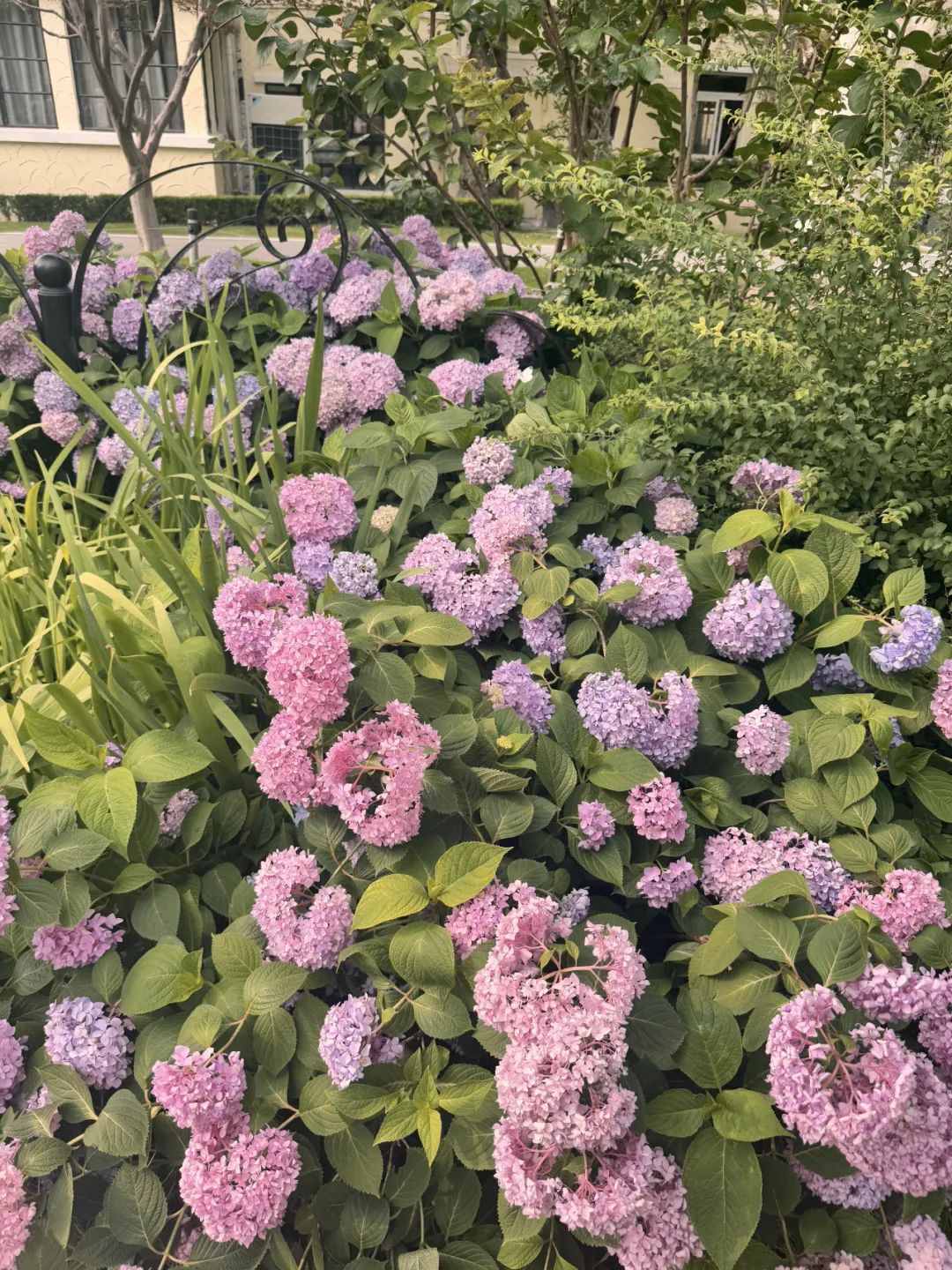 但绣球花似乎从未同意过,不远处的粉紫色的绣球,每年都在摇摇晃晃地轻颤与夏风絮语嬉闹。