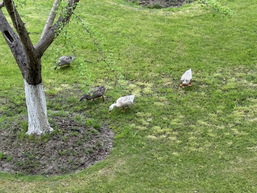 夏日午后,流浪猫趴在树荫打盹,鸭群摇摇摆摆游过池塘。花猫偶尔抬眼,鸭子嘎嘎唤同伴,暑气里,它们共享这方小天地的悠闲,各自书写着夏日的温柔故事 。