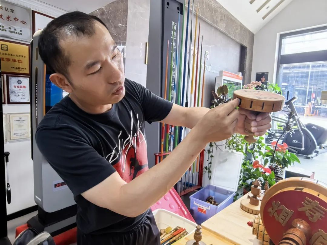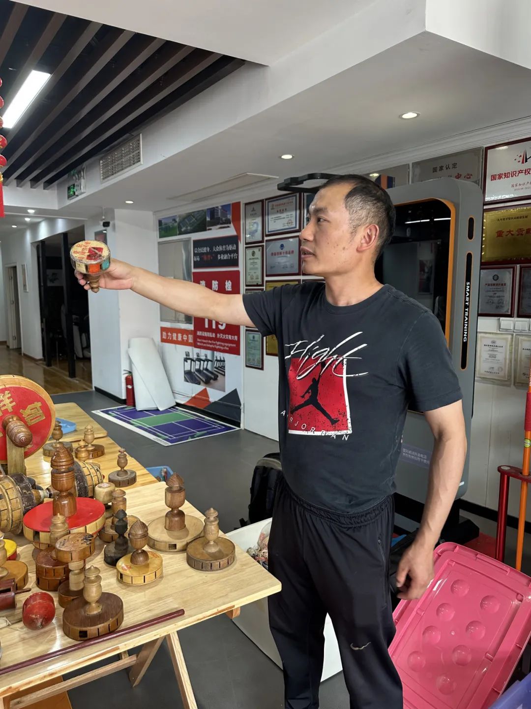团队在调研中了解到,目前南京仅存的竹木空竹作坊是窦氏龙嗡,窦昌增师傅是唯一的一位还在继续制作传统空竹的手工艺人。传承人赵凯介绍,该作坊完整保留了传统车木工艺,每只空竹需经78道工序精制而成,其产品因工艺精湛、音色独特而闻名,长期在夫子庙等文化场所展销,堪称南京空竹制作技艺的活态传承典范。