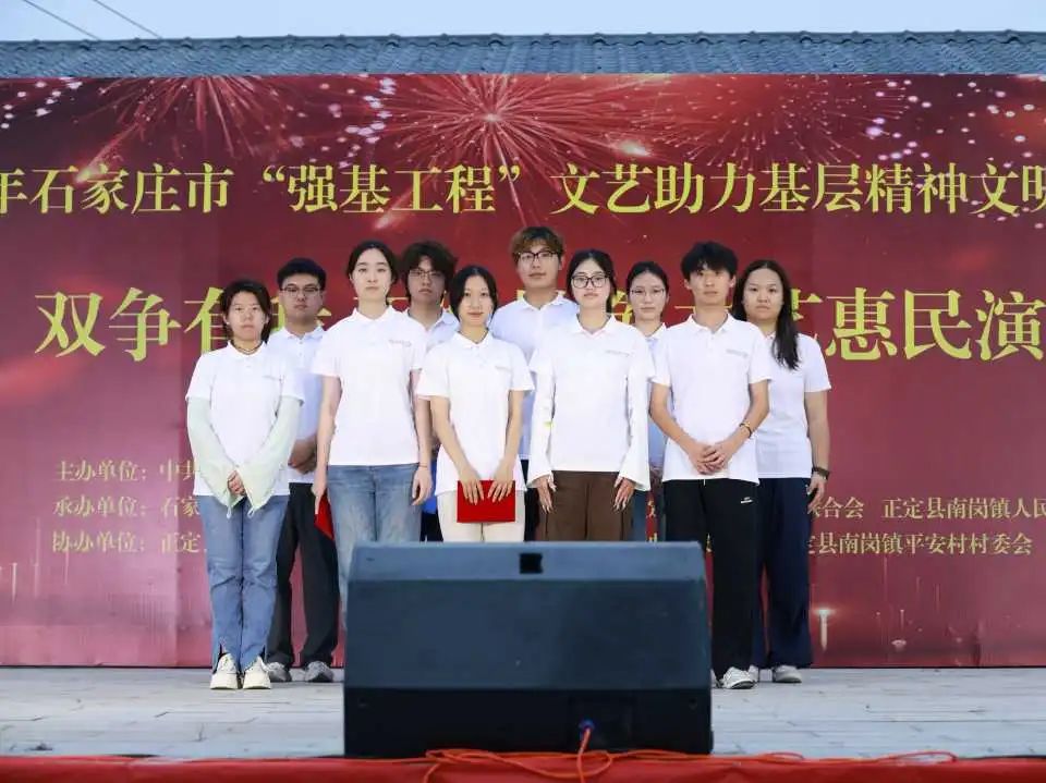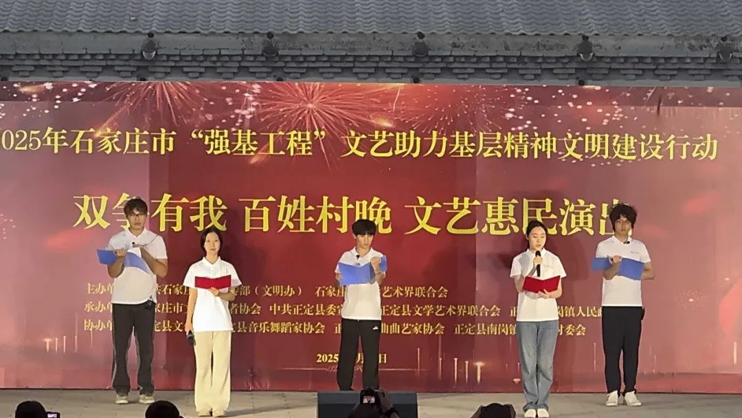 2025年7月15日晚,石家庄市“强基工程”文艺助力基层精神文明建设活动走进南岗镇平安村,举办“双争有我·百姓村晚”文艺惠民演出。活动前期,团队成员在村干部带领下走访村民,深入了解基层生活,增进与群众的互动交流。演出在欢快的铃鼓舞中拉开序幕,歌曲《最美的歌唱给妈妈》、京剧选段《空城计》、快板《石家庄文明十条唱文明》等节目精彩纷呈。团队成员还深情朗诵诗歌《我的祖国》,真挚的情感表达赢得现场观众阵阵掌声。