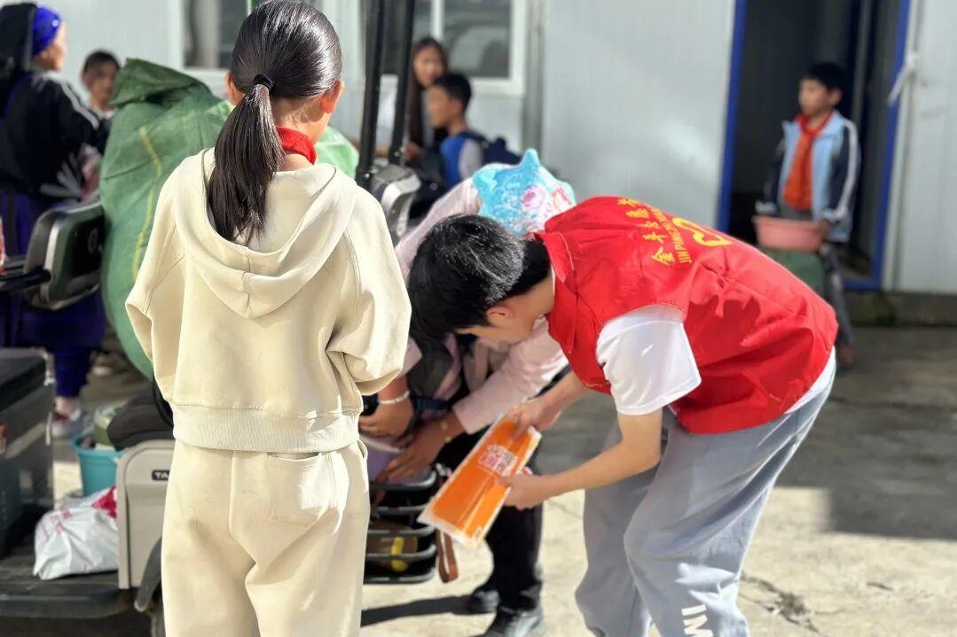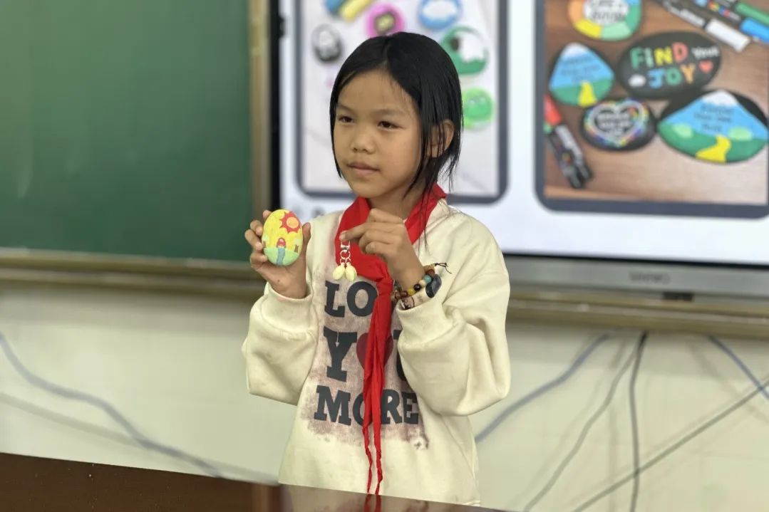 营盘乡中心小学内,团队面向60位小员工开展公益小课堂:石头画、超轻粘土捏制的情绪脸谱在孩子们手中诞生,孩子们珍惜学习机会,勇于互动。放学时,成员们在校门口协助疏导交通,帮家长搬运行李,夕阳下的身影,成为校园里温暖的风景。