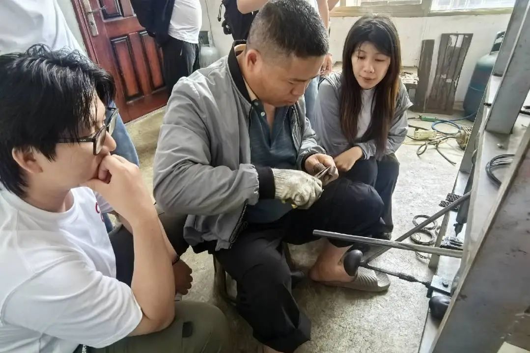 金平县恒美民族服装工作室里,团队成员聆听苗族服饰纹样的吉祥寓意,尝试吹奏芦笙,换上 “花苗”“黑苗” 分支的特色服装。工作室老师通过直播向外界介绍服饰的历史与工艺,成员们参与其中,亲身体验 “指尖上的传承” 如何借助现代传播破圈。