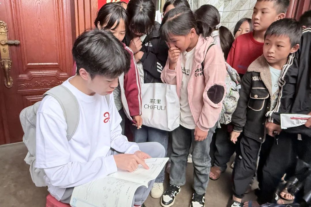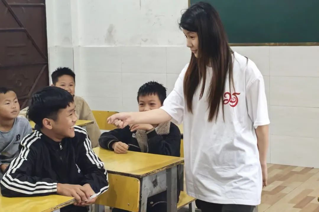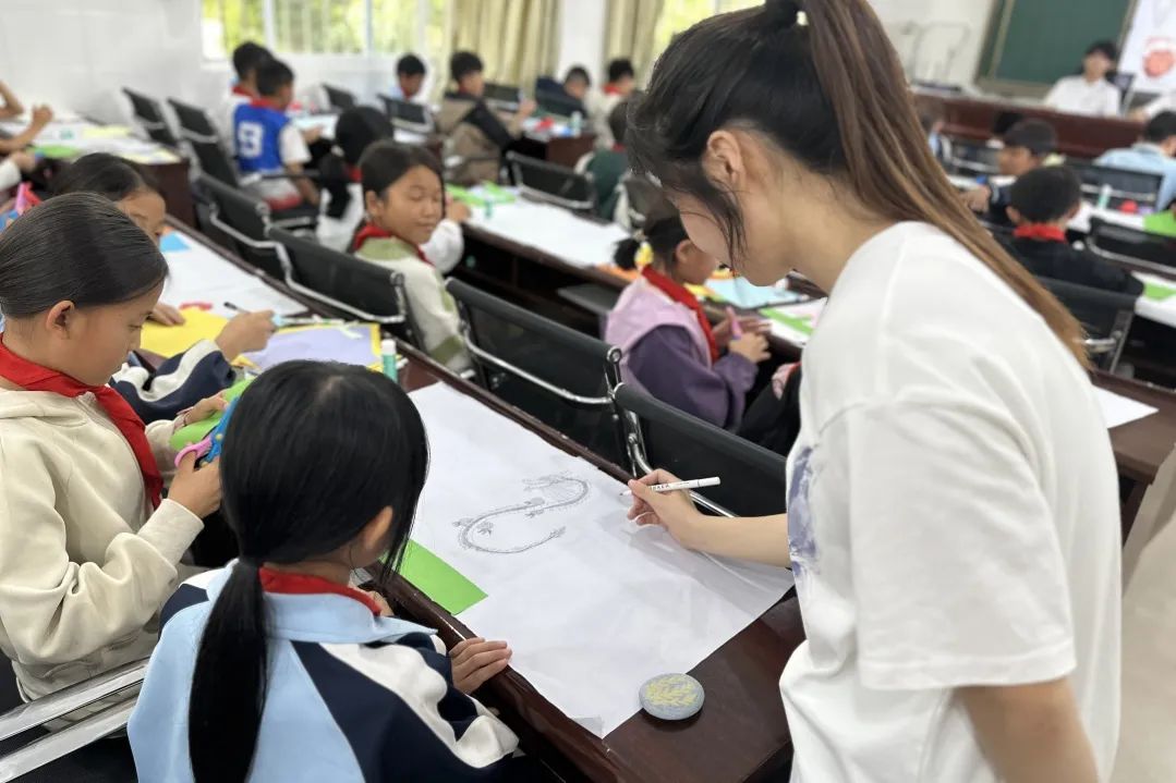 在水碓冲小学的课堂,团队成员带来多元互动:用画笔绘上海风貌,拓宽孩子视野;耐心教题目、玩公益小游戏,传递知识与欢乐;与董事长深入交流,共探孩子成长方向,以行动为乡村教育添彩。