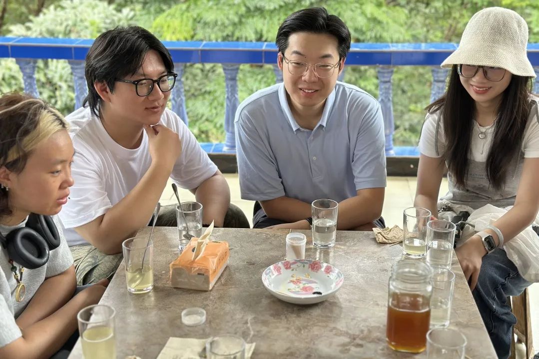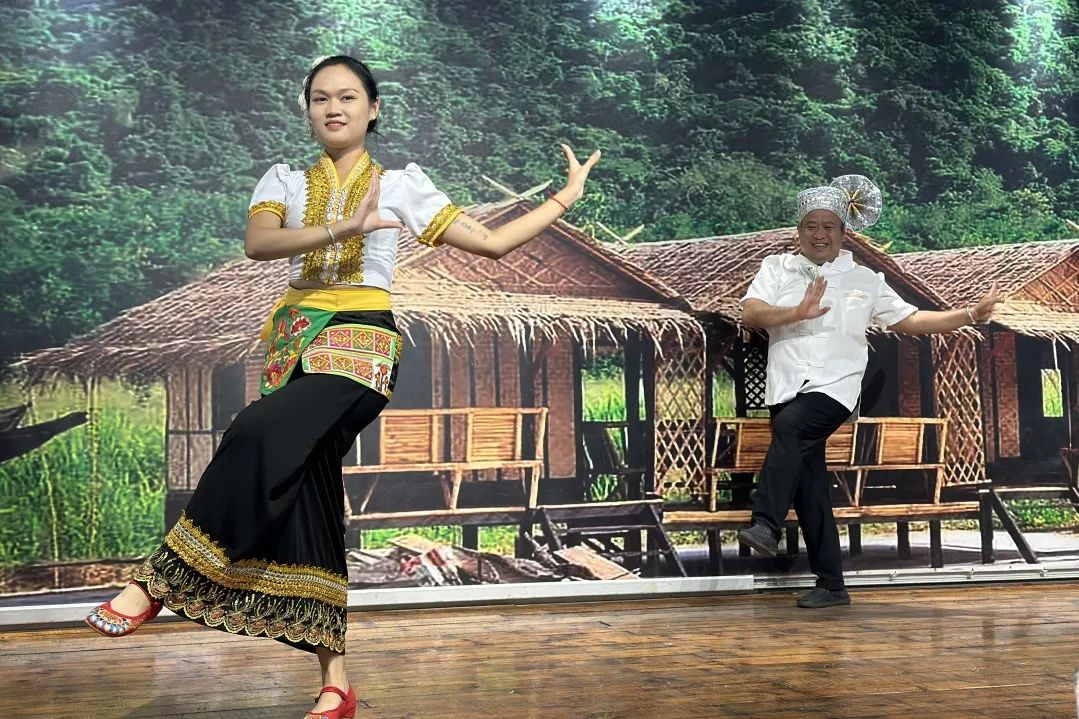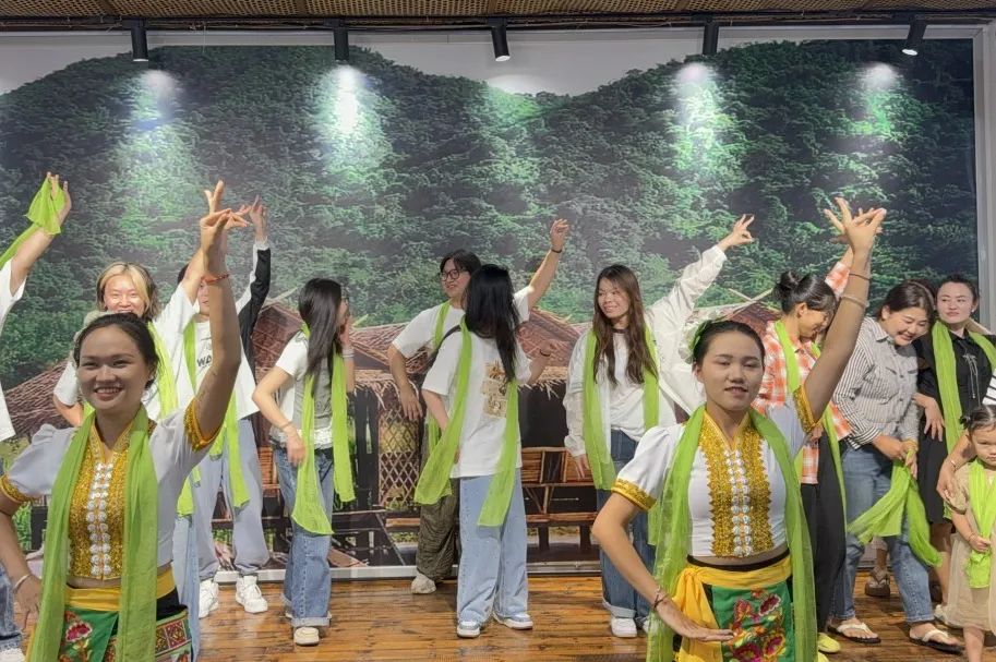 西双楚泰傣味餐厅里,孔雀舞、象脚鼓舞展现着傣族风情。队员们受邀共舞 “三道弯”,团队负责人即兴演绎融合傣族民歌元素的现代歌曲,台上台下的欢声笑语,诠释着 “中华民族一家亲” 的深刻内涵。