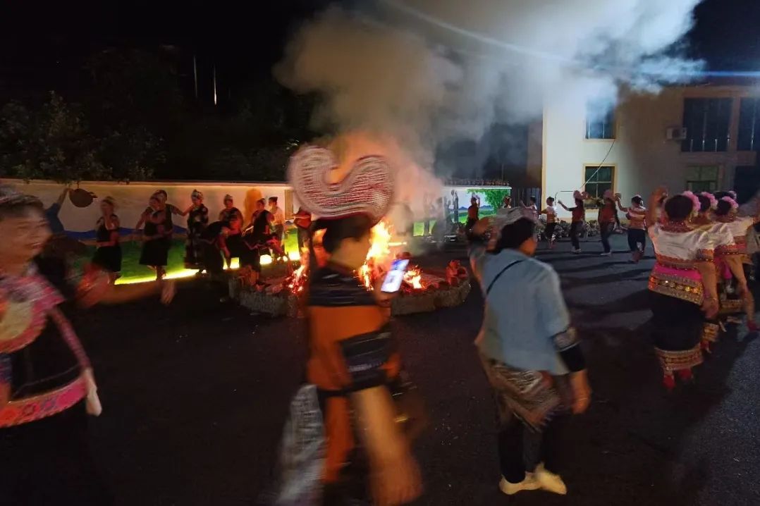 在元阳那里村,“无轮泥条盘筑”“无窑平地堆烧” 的传统技艺令人称奇。水波纹像被风吹皱的澜沧江,螺旋纹藏着傣家人对宇宙的想象,还有简化的孔雀尾羽、菩提叶,这些纹样既是装饰,更是傣族与自然共生的哲学表达。团队成员在州级传承人阮国林的带领下与当地村民共同体验火把节,感受非遗传承与民族文化交融的过程。
