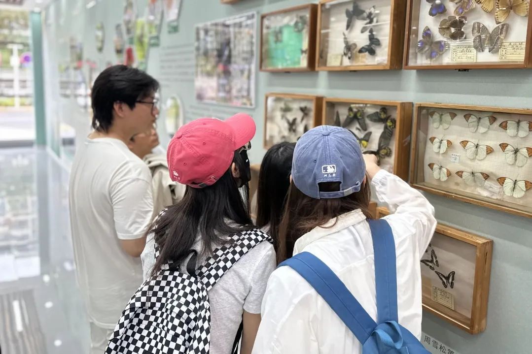 马鞍底蝴蝶文化馆中,数百件珍稀蝴蝶标本揭示着此地作为 “世界蝴蝶谷” 的生态价值。在生态模拟饲养园,湿热的环境里,万千蝴蝶穿梭于蕨类植物间,柑橘凤蝶偶尔停驻肩头,阳光透过穹顶洒下,蛱蝶吸食果实、凤蝶探取花蜜,让成员们直观感受生物多样性的魅力。