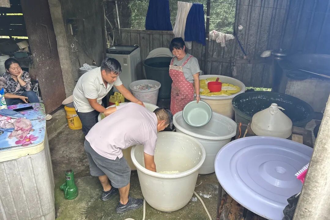 营盘乡的 “小豆腐产业” 展现着乡村转型的智慧。在乡党委书记冷易峰带领下,团队走访罗戈塘村加工车间,了解泡豆、磨浆与过滤、煮浆点卤、包豆腐、阴干成型等融合传统与现代技术的工序。虽部分作坊仍依赖线下销售,但已形成较完整产业链,为乡村产业振兴提供样本。