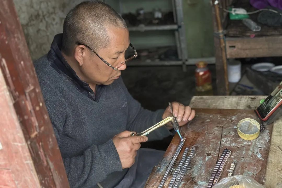 在水碓冲银匠铺中,非遗匠人以锤为笔、以银为纸,在银饰上镌刻百花纹样。“每朵花都有来历,这些纹样是中华文化共同体的微观缩影。” 瑶族师傅的讲述让成员们明白,这些银饰是各民族文化交融的缩影,既承载着 “技艺传家” 的坚守,更系紧了民族团结的精神纽带。