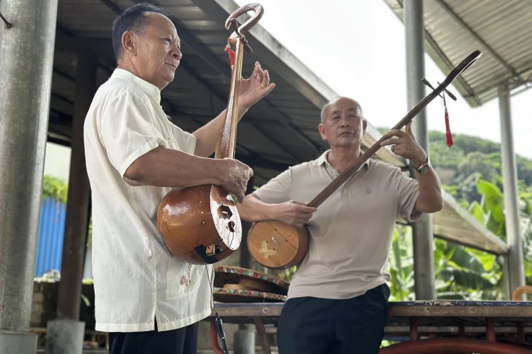 中勐村中,灵动的篾帽舞、古朴的四方舞等传统白傣舞蹈接连上演,村民们巧妙利用电饭煲改良制作工艺,既突破了传统材料的局限,又完整保留了其独特悠扬的音色。团队成员捧起乐器,与村民共同演绎,沉浸在祥和的时光里。