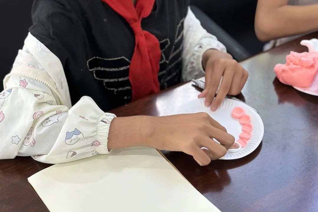 水塘村,留守儿童关怀活动循序展开:孩子们围着成员专注地装填香囊、挥洒颜料涂鸦、巧手折叠彩纸。苗族男孩将作品送给奶奶的心愿,让简单的手工活动成为连接情感的纽带,这里也成了假期里孩子们的 “第二家园”。