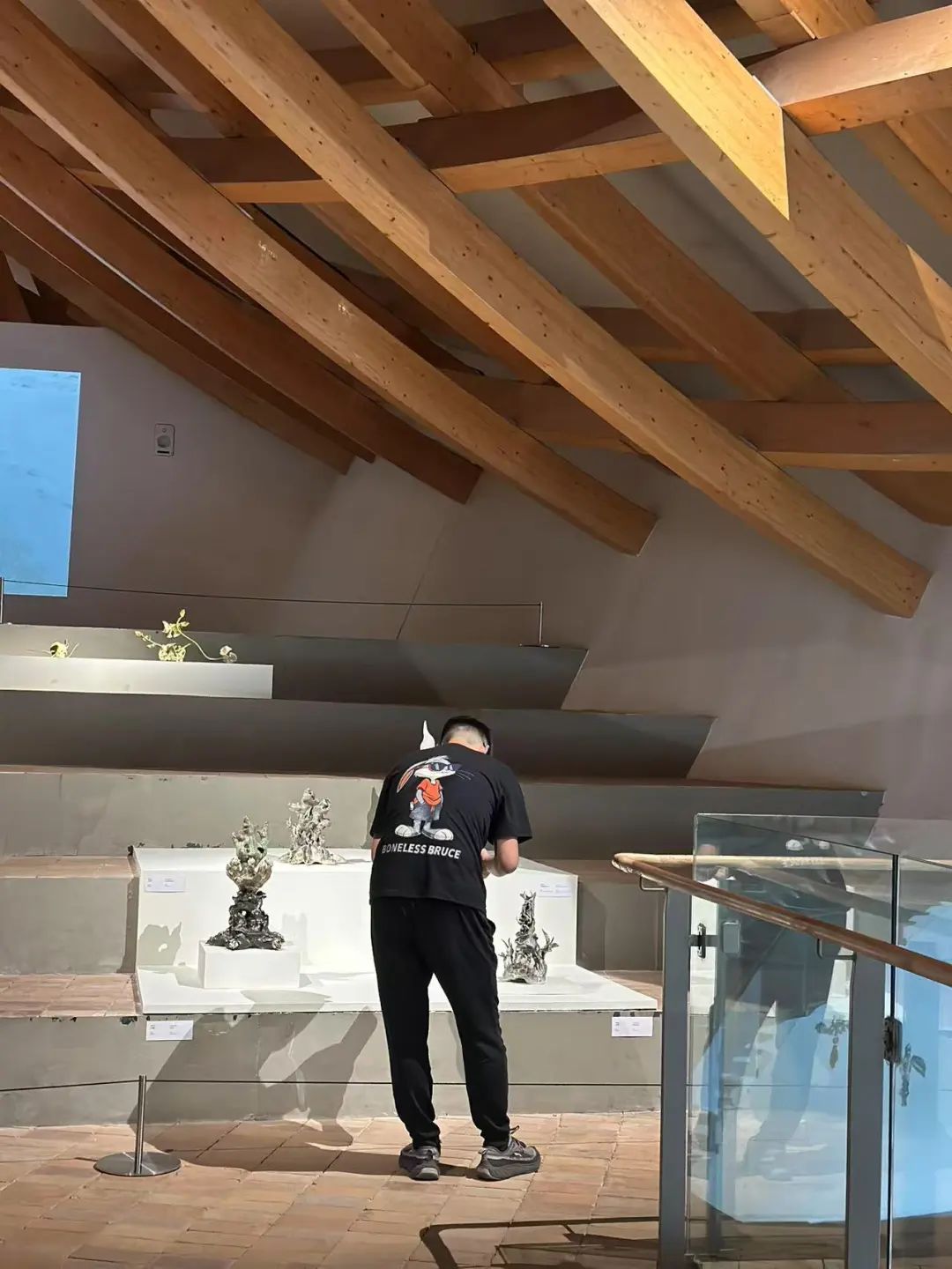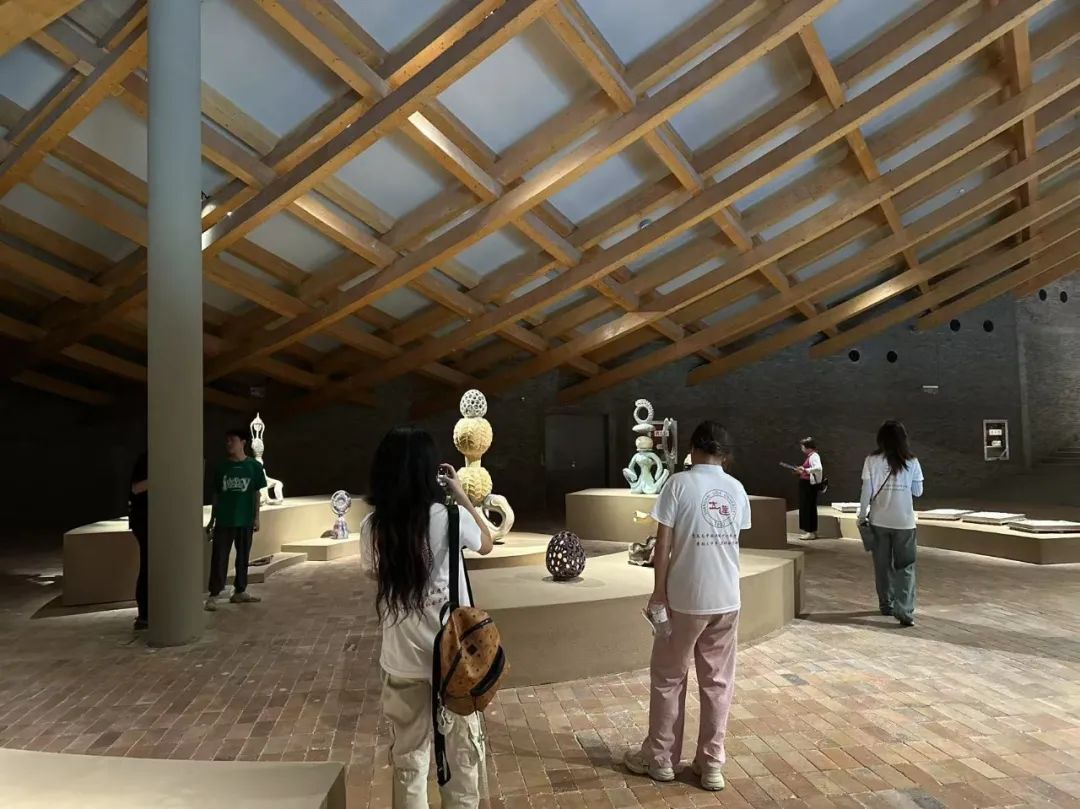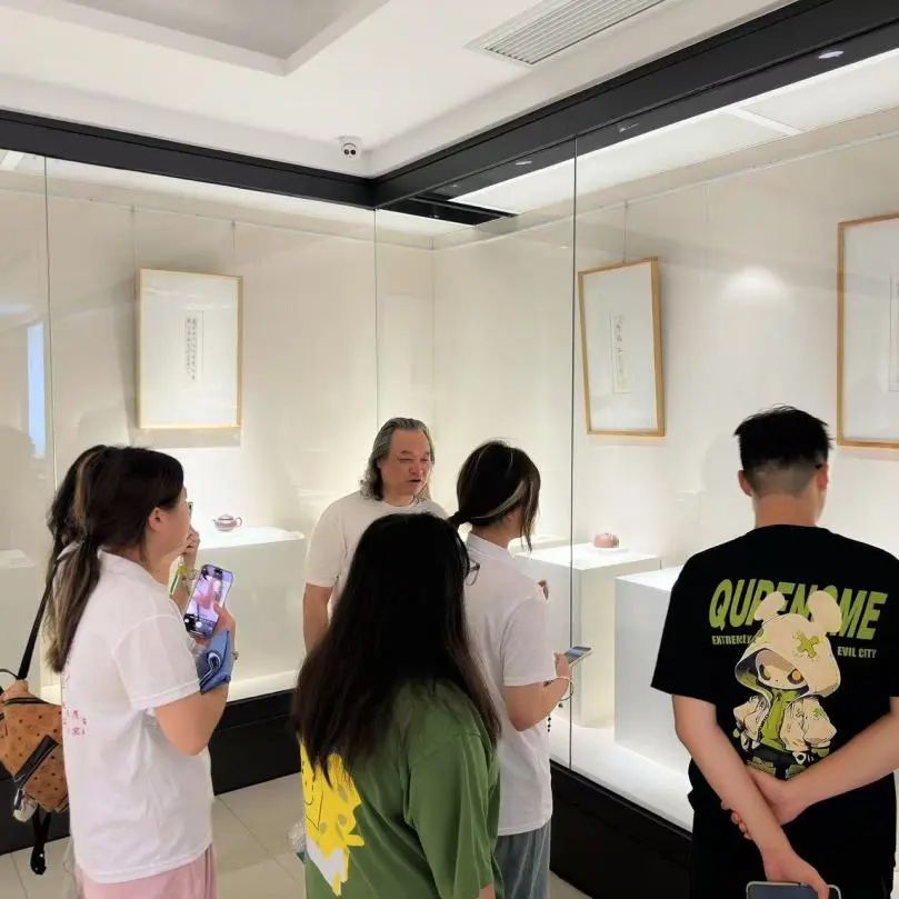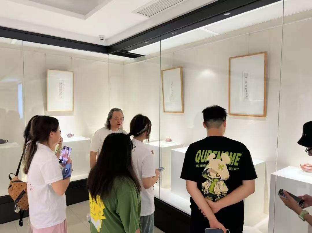 行程第四天,陶二厂美术馆的展品颠覆了成员们对紫砂的想象:有的作品以扭曲的壶型表达“流动的时间”,有的将紫砂与金属、玻璃结合,拓展出茶具之外的艺术形态。“这不是‘离经叛道’,是让紫砂走进当代艺术语境。”馆长的话引人深思。