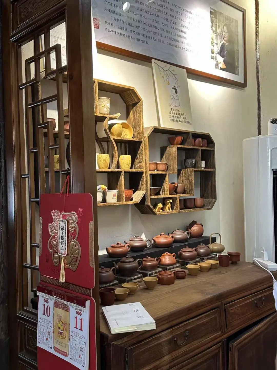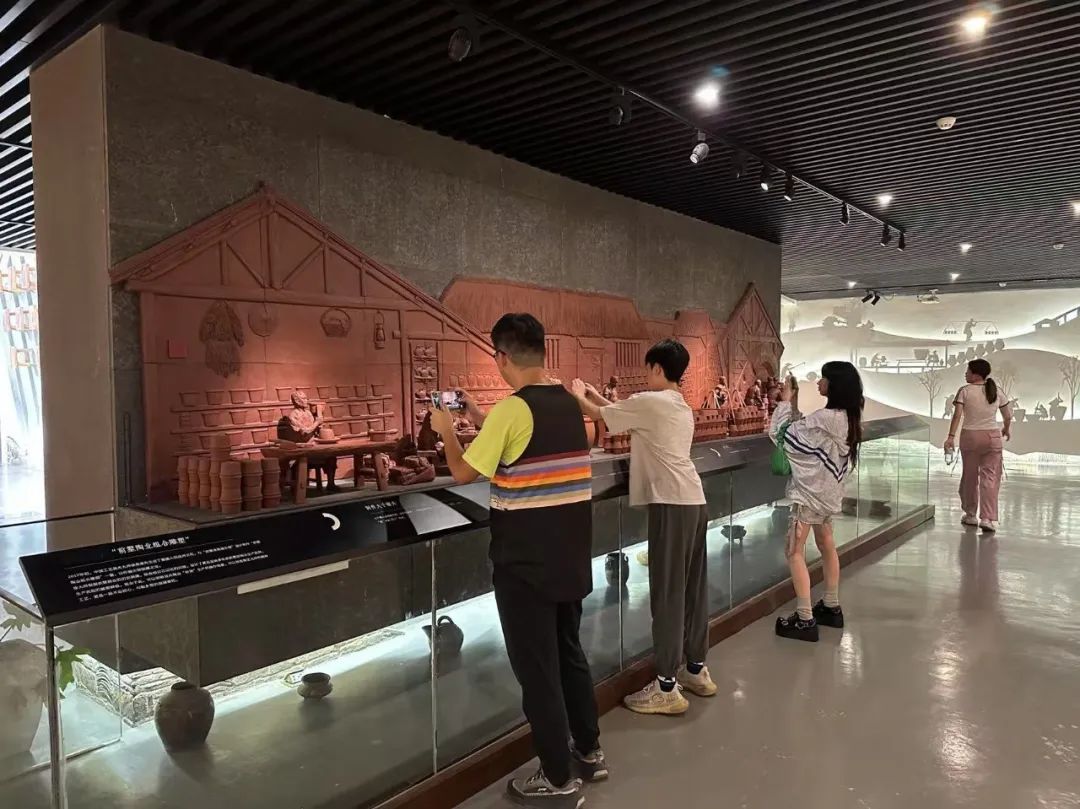 窑身漫步,我们还看到了窑工们曾经揉泥的石臼、码放匣钵的架子,甚至能在窑壁上摸到因高温而凝结的釉泪。“龙窑烧窑全凭经验,火候、时间、柴薪都得拿捏精准,一窑好货背后是几十年的功夫。”向导的话让我们明白,紫砂非遗的传承,从来不只是技艺的复制,更是匠人对“泥与火”的敬畏与默契。在龙窑展示馆里,从明代的粗陶片到现代的紫砂精品,一件件展品串联起紫砂从实用器皿到艺术瑰宝的演变,也让我们读懂:所谓非遗,正是在这样的坚守中生生不息。