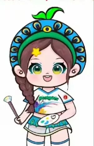 将IP形象的头饰融入孔雀翎羽元素,设计的创意主要来源于校园里踱步的孔雀,印有Designer的上衣,直接点明艺创专业属性,强化公司专业辨识度。人物头上的皇星发夹与萌芽装饰,是星生概念的直观视觉落点。画与调色盘是艺术创作最直接的工具符号,画笔是创意落地的媒介,调色盘是色彩创意的试验场。
