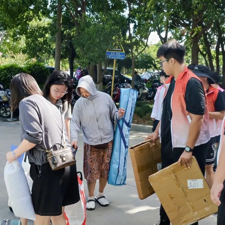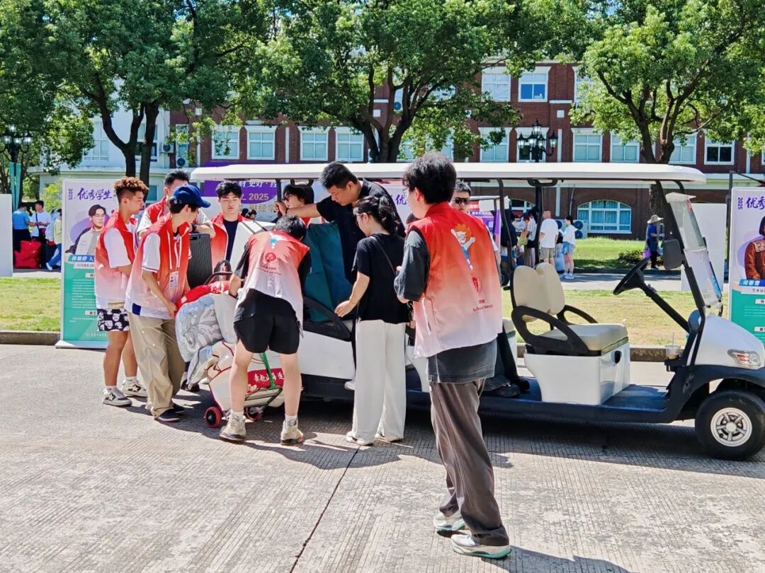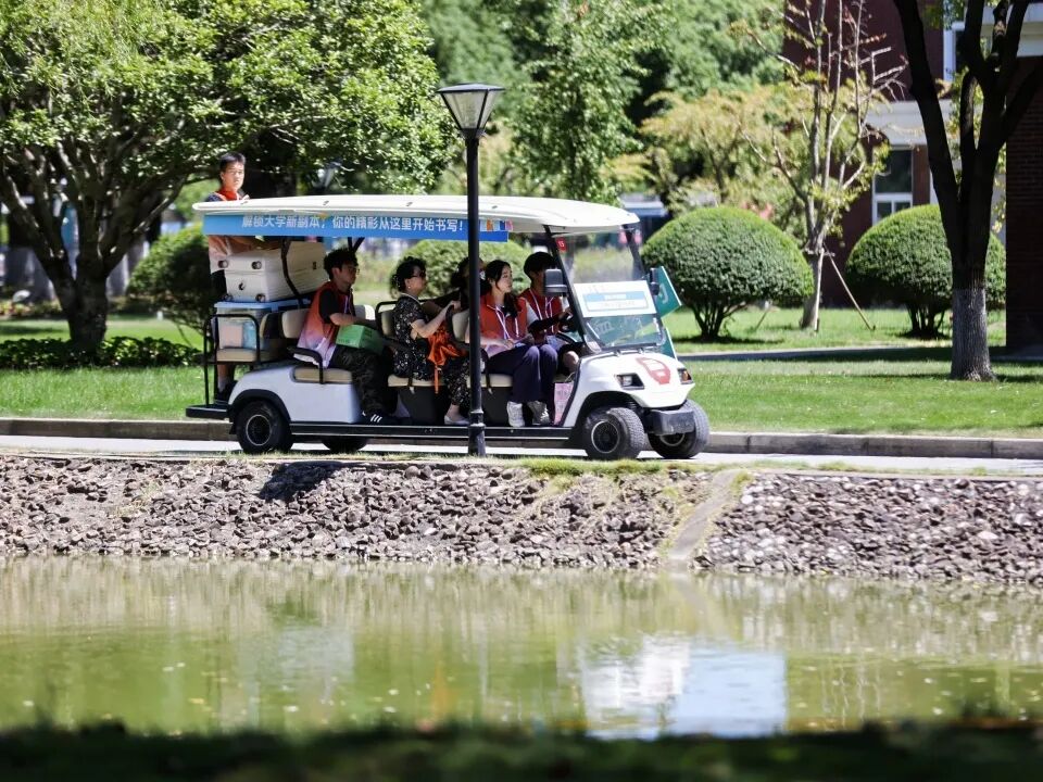 报到日的晨光里,志愿者与老师们已迎着朝阳忙碌。许多身影在迎新现场穿梭,将场地布置成温暖的模样,静静等新生踏来。观光车在晨光里往返穿梭,载满行李也载满笑语——志愿者和老师们汗湿了衣衫。那些关于教学楼的方位、图书馆的开馆时间,都成了递给新生的第一份“入学指南”。