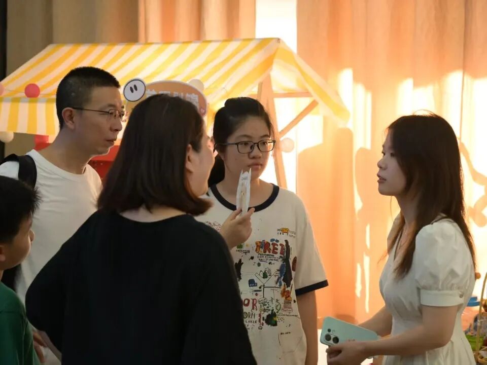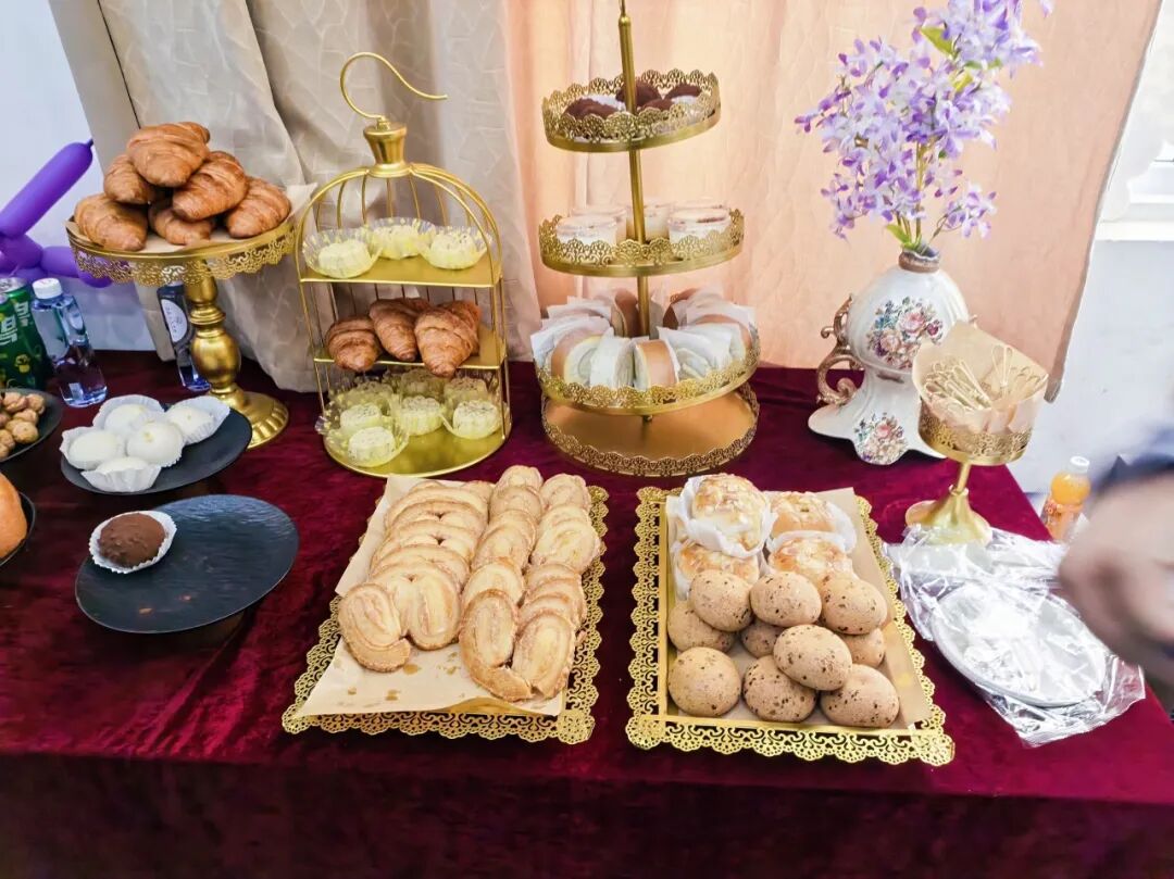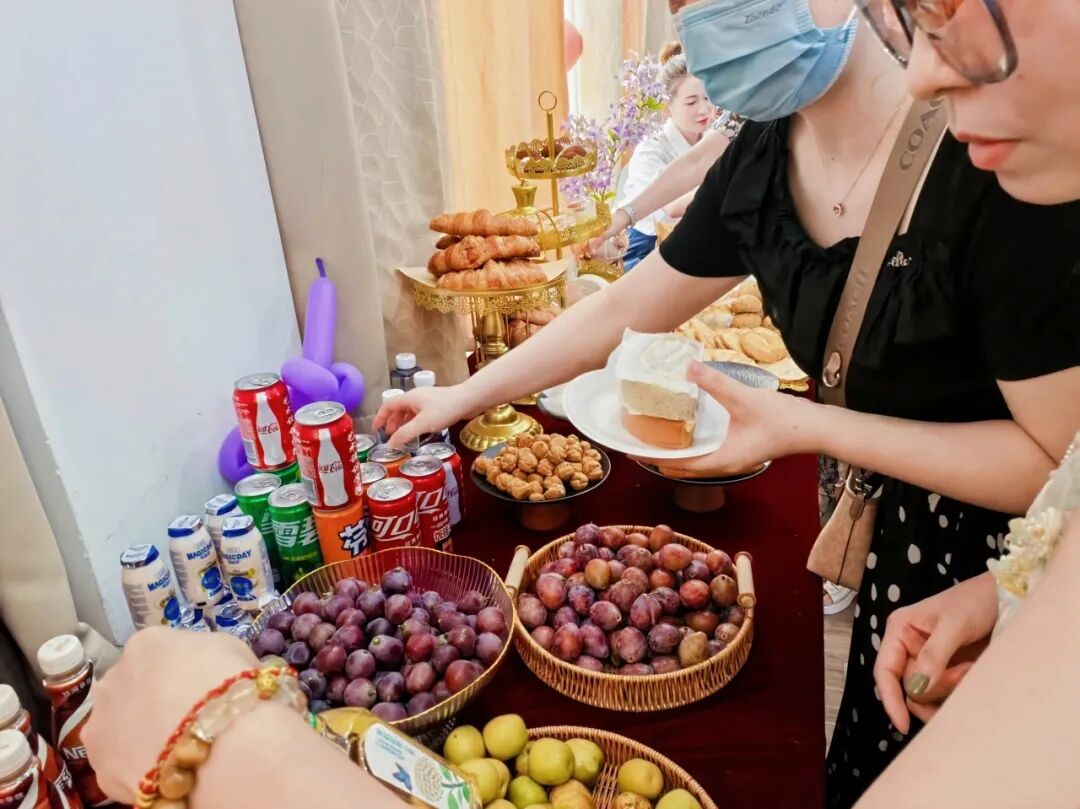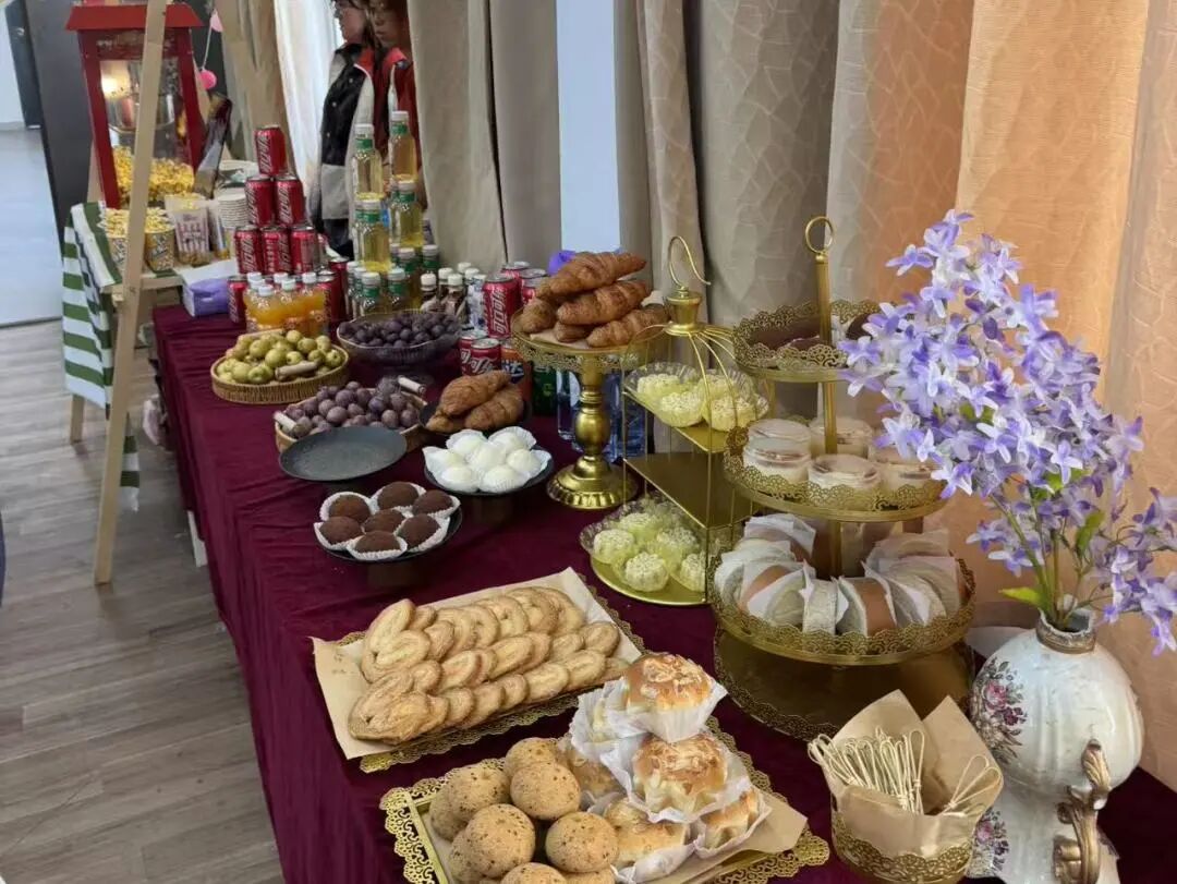 家校联盟会圆满落幕后,冷餐交流环节随即开展。精致餐点有序陈列,果香与烘焙香气交织,现场氛围温馨融洽。