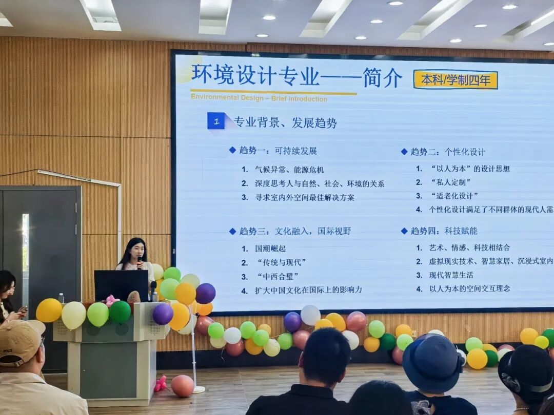 此外安排专业员工担任讲解员,为新生和家长介绍作品的设计理念、创作思路和制作过程,让新生和家长直观了解各专业的特点和魅力和专业体验活动,分别为视觉传达、产品设计和环境设计三个专业设置体验项目。新生和家长也可以亲自参与体验,感受专业的乐趣和挑战,激发对专业学习的兴趣。专业教师在体验区进行指导和讲解,解答新生和家长的疑问,介绍专业课程设置和学习方法。