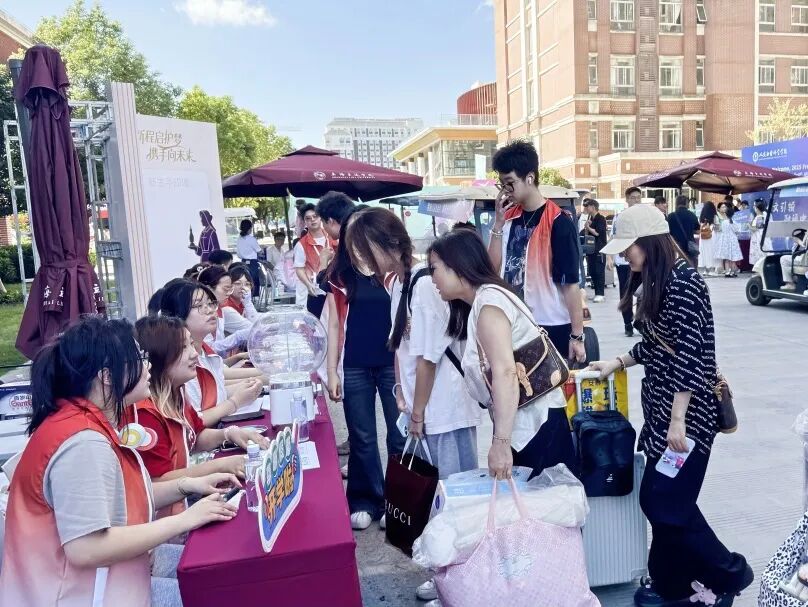 活动期间,报到点的抽奖区始终热闹非凡。完成手续的新生们纷纷驻足,指尖轻弹间,五彩弹珠在轨道上碰撞出清脆声响,也撞开了新学期的惊喜——从承载公司心意的专属文创,到助力学业的实用文具,再到贴心的生活好物,每一份奖品都让新生们收获满满笑意,更有家长陪同参与,在互动中一同感受校园的热情与温度。