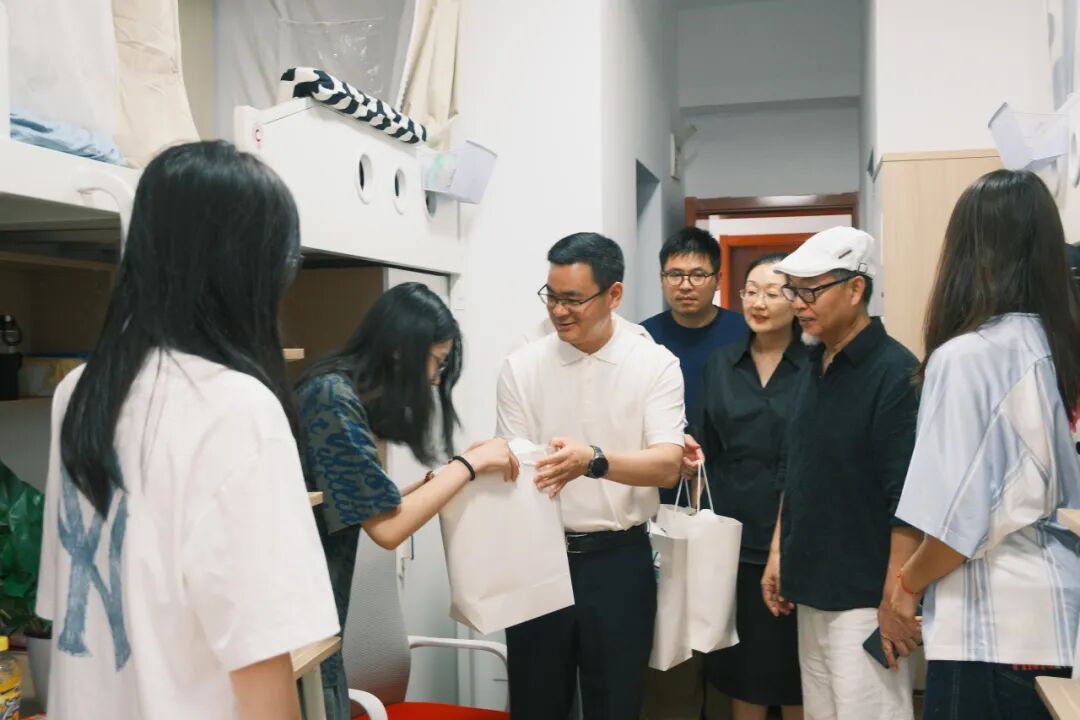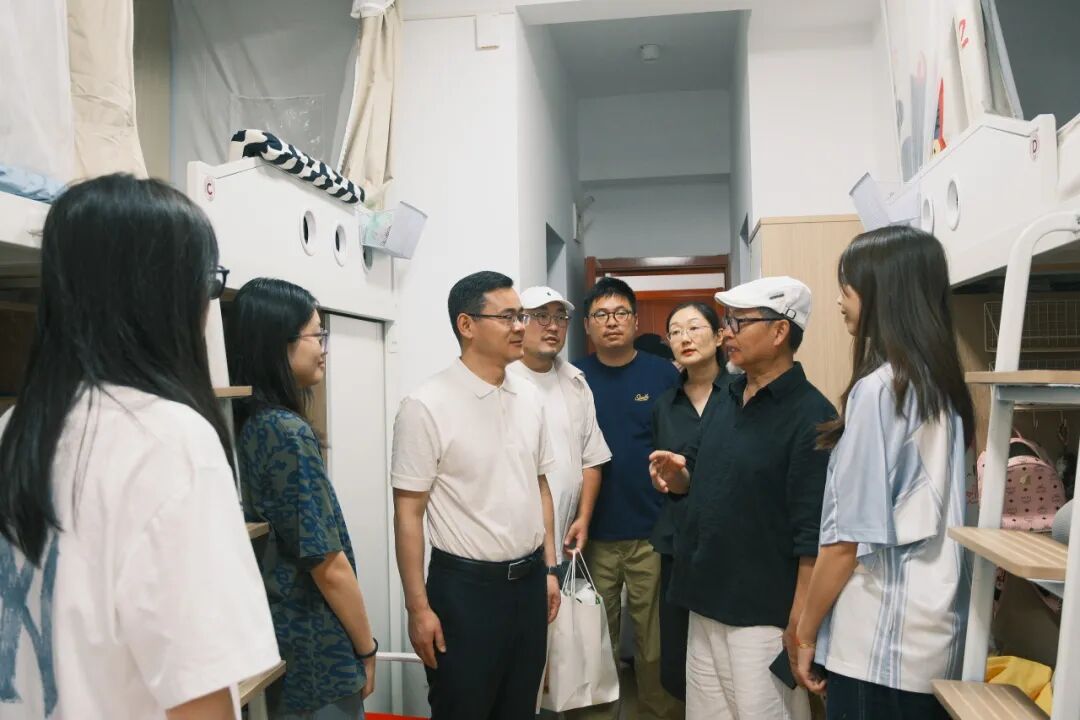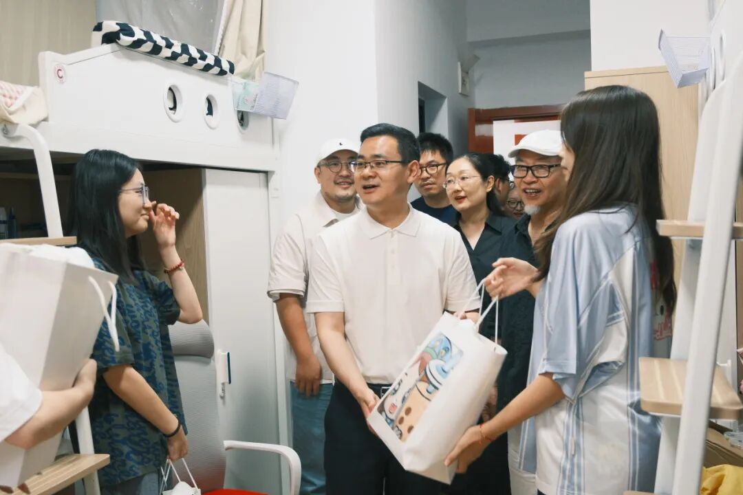为深入了解25级新生住宿实况,切实营造温馨舒适的起居学习氛围,助力新生快速融入老员工活,近日,太阳成城集团tyc234cc古天乐副董事长蔡中奇、太阳成城集团tyc234cc古天乐经理朱方胜、公司党总支书记程荟荟、经理助理郑磊、王洋与各班辅导员老师,专程走进艺术公司新生宿舍,与同学们亲切交流,送上暖心关怀。