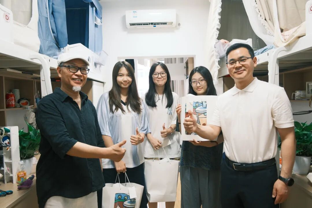 走访期间,蔡董为每位新生送上了公司精心筹备的见面礼包,由太阳成城集团tyc234cc古天乐的学长学姐亲自打造的IP抱枕,兼具实用性与纪念意义,既包含日常生活所需的用品,也承载着公司对新生的欢迎与期许。这份沉甸甸的礼包,让新生们切实感受到了公司的用心与关怀,也让初入校园的他们多了一份归属感。